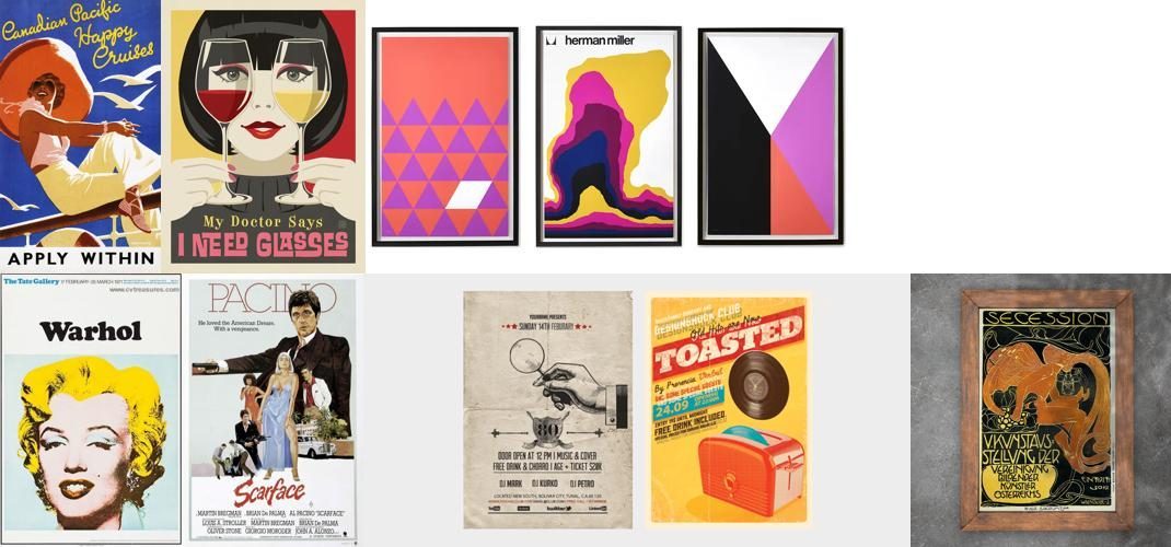 - Reiseposter – Plakate von Städten, Ländern oder Airlines.